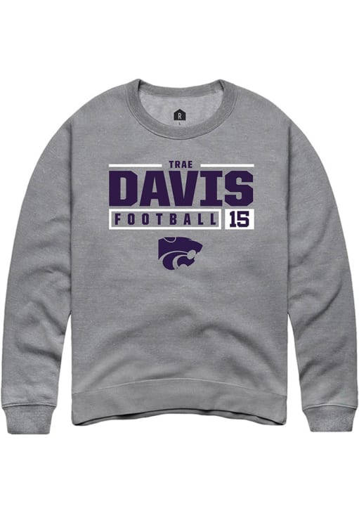 Trae Davis Rally Mens Graphite K-State Wildcats NIL Stacked Box Crew Sweatshirt