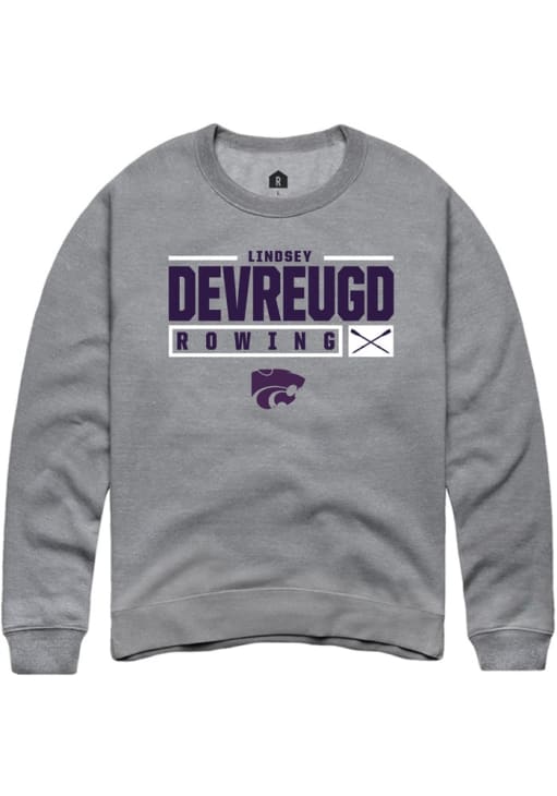 Lindsey DeVreugd Rally Mens Graphite K-State Wildcats NIL Stacked Box Crew Sweatshirt