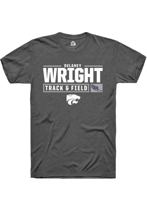 Delaney Wright Dark Grey K-State Wildcats NIL Stacked Box Short Sleeve T Shirt