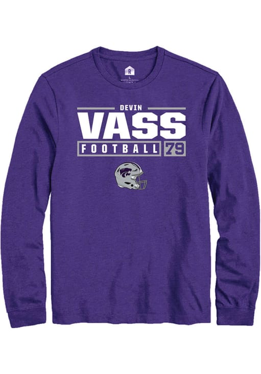 Devin Vass Rally Mens Purple K-State Wildcats NIL Stacked Box Tee