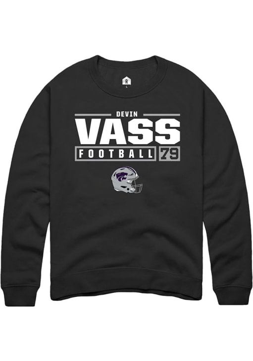 Devin Vass Rally Mens Black K-State Wildcats NIL Stacked Box Crew Sweatshirt