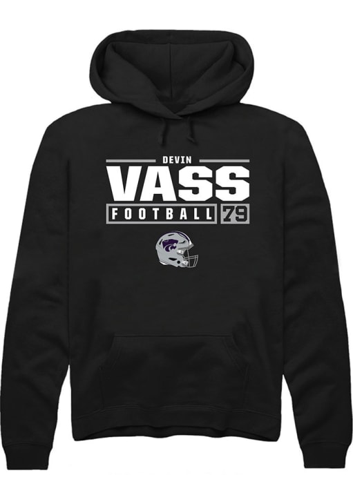 Devin Vass Rally Mens Black K-State Wildcats NIL Stacked Box Hooded Sweatshirt