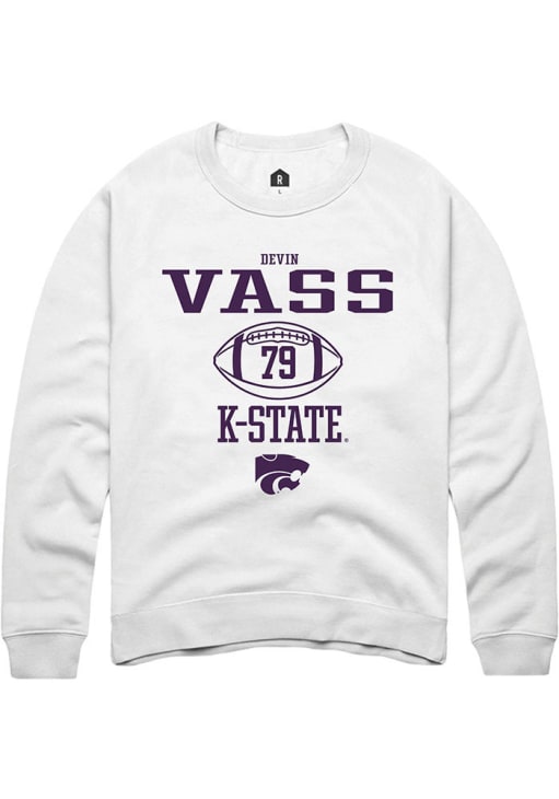 Devin Vass Rally Mens White K-State Wildcats NIL Sport Icon Crew Sweatshirt