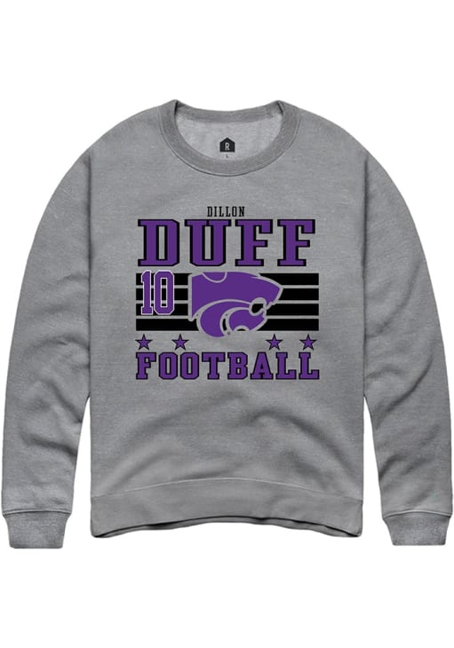 Gear up for the ultimate game day experience with this remarkable K-State WildcatsMens Grey Football NIL Striped Crew Sweatshirt! Designed with the true fan in mind, this Wildcats Long Sleeve Crew Sweatshirt features a custom graphic with player's name and number. Stay warm and comfortable with this Mens K-State Wildcats Wildcats Crew Sweatshirt.