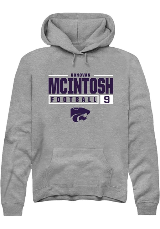 Donovan McIntosh Rally Mens Graphite K-State Wildcats NIL Stacked Box Hooded Sweatshirt
