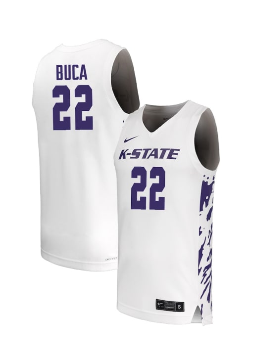 Dorin Buca Mens White K-State Wildcats NIL Name And Number Basketball Jersey