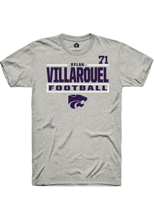 Dylan Villarouel Ash K-State Wildcats Football NIL Stacked Box Short Sleeve T Shirt