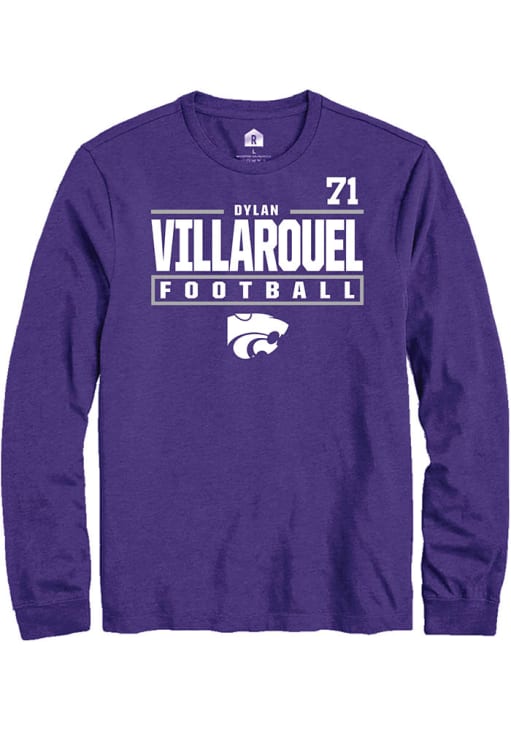 Dylan Villarouel Rally Mens Purple K-State Wildcats Football NIL Stacked Box Tee