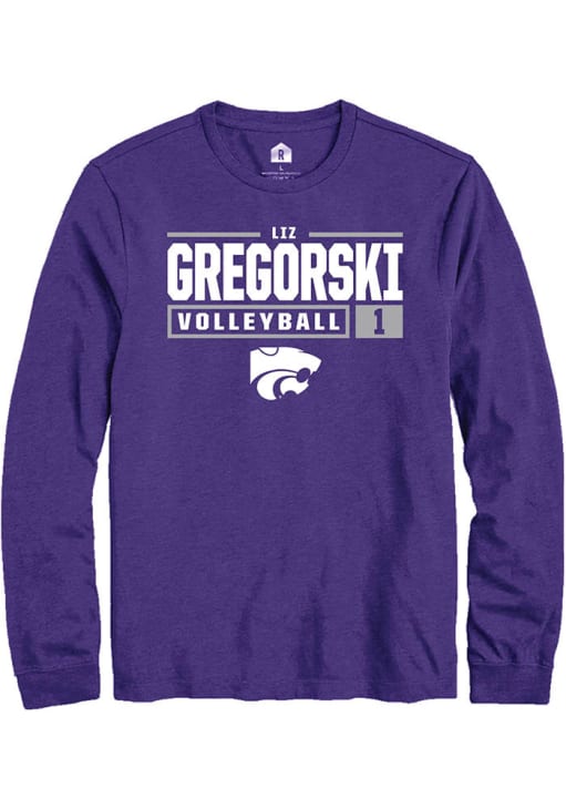 Elizabeth Gregorski Rally Mens Purple K-State Wildcats NIL Stacked Box Tee