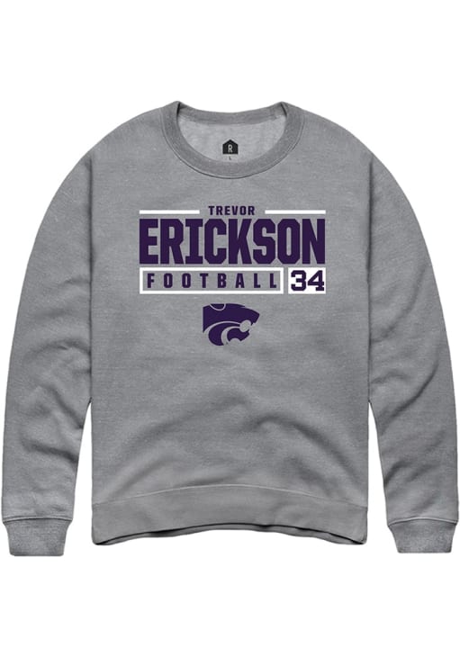 Trevor Erickson Rally Mens Graphite K-State Wildcats NIL Stacked Box Crew Sweatshirt