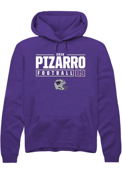 Erik Pizarro Rally Mens Purple K-State Wildcats NIL Stacked Box Hooded Sweatshirt