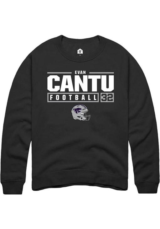 Evan Cantu Rally Mens Black K-State Wildcats NIL Stacked Box Crew Sweatshirt