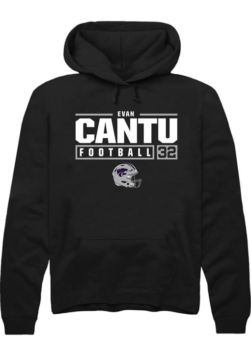 Evan Cantu Rally Mens Black K-State Wildcats NIL Stacked Box Hooded Sweatshirt
