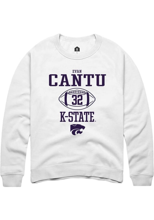 Evan Cantu Rally Mens White K-State Wildcats NIL Sport Icon Crew Sweatshirt