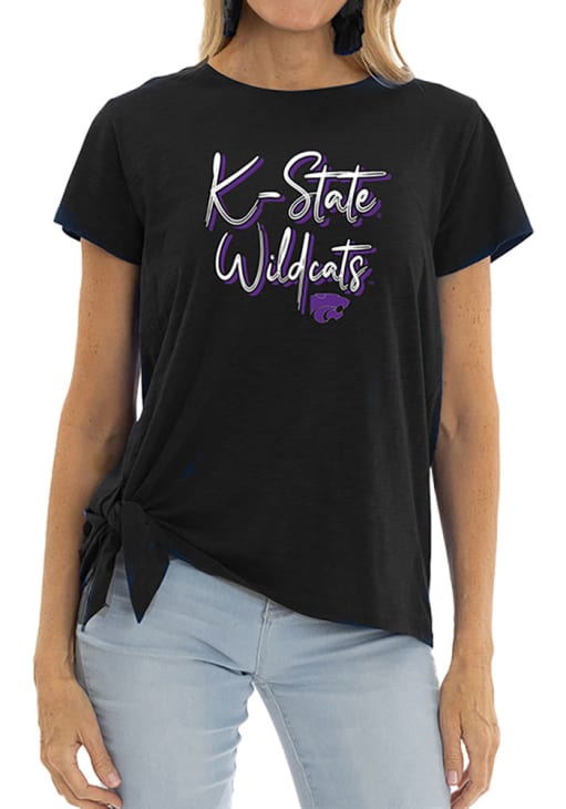 Display your team spirit with this remarkable K-State Wildcats Black Sophie Side Tie Short Sleeve T-Shirt! The K-State Wildcats Short Sleeve Tee showcases a screen print team name on center chest that truly sets it apart. Stand out from the crowd and proudly declare your allegiance to the Wildcats with this exceptional Black K-State Wildcats T-Shirt. Fear The Cats!