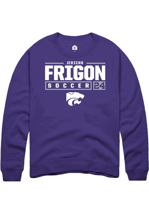Jericho Frigon Rally Mens Purple K-State Wildcats NIL Stacked Box Crew Sweatshirt