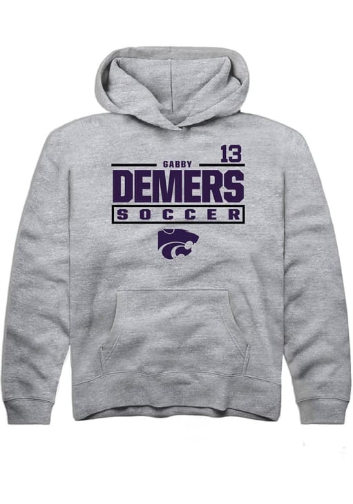 Gabby DeMers Rally Youth Grey K-State Wildcats NIL Stacked Box Long Sleeve Hooded Sweatshirt