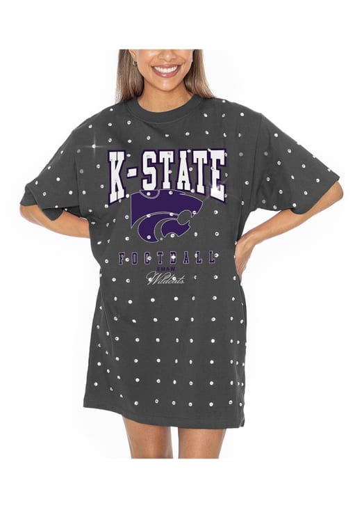 Womens K-State Wildcats Charcoal Gameday Couture Game Changing Rhinestone Short Sleeve Dress