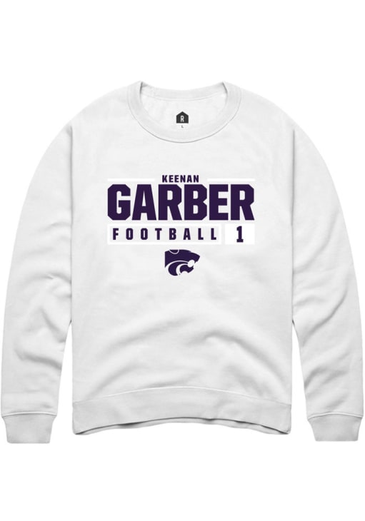 Keenan Garber Rally Mens White K-State Wildcats NIL Stacked Box Crew Sweatshirt