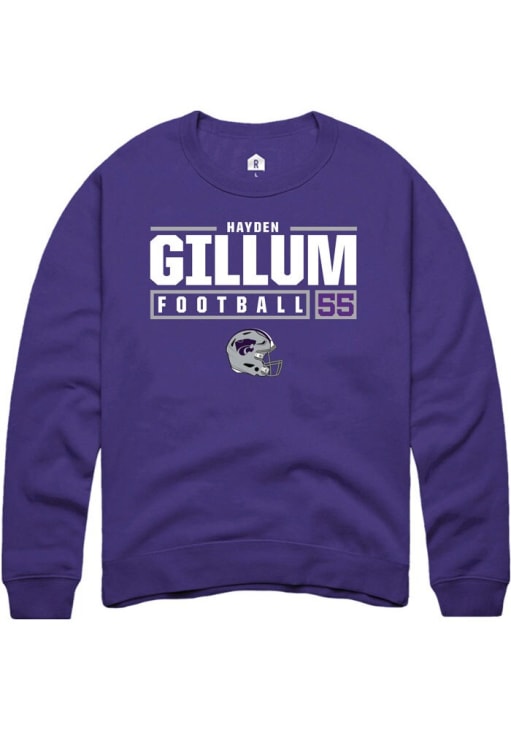Hayden Gillum Rally Mens Purple K-State Wildcats NIL Stacked Box Crew Sweatshirt