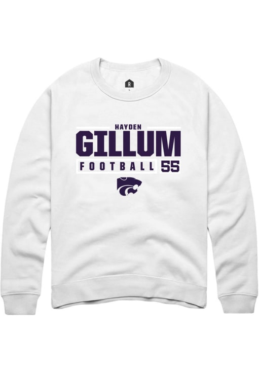 Hayden Gillum Rally Mens White K-State Wildcats NIL Stacked Box Crew Sweatshirt