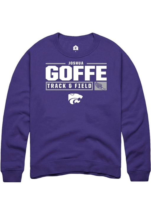Joshua Goffe Rally Mens Purple K-State Wildcats NIL Stacked Box Crew Sweatshirt