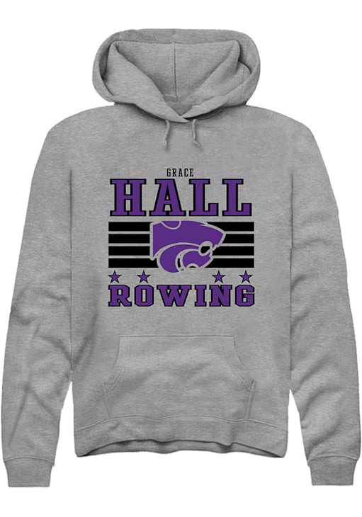 Grace Hall Rally Mens Grey K-State Wildcats NIL Striped Hooded Sweatshirt