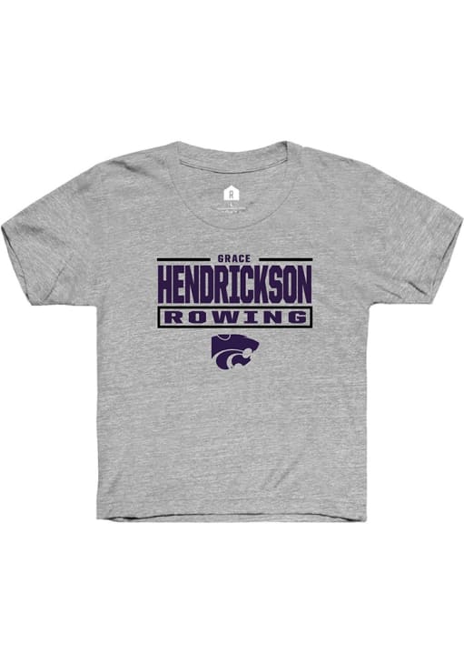 Kids, support your favorite player in this Youth Grey K-State Wildcats Grace Hendrickson Short Sleeve Player Tee! This Player T-Shirt features a NIL graphic, so Grace Hendrickson can feel your team spirit! This is a perfect Youth Player T-Shirt to wear either everyday or on game day. Fear The Cats!