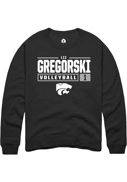 Elizabeth Gregorski Rally Mens Black K-State Wildcats NIL Stacked Box Crew Sweatshirt