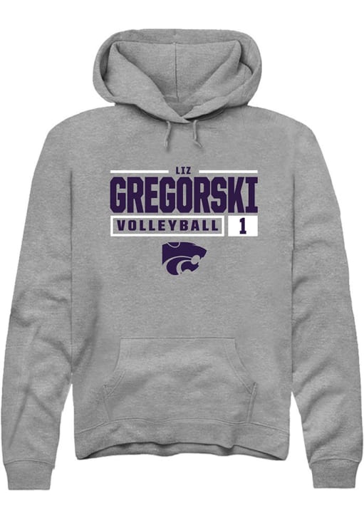 Elizabeth Gregorski Rally Mens Graphite K-State Wildcats NIL Stacked Box Hooded Sweatshirt
