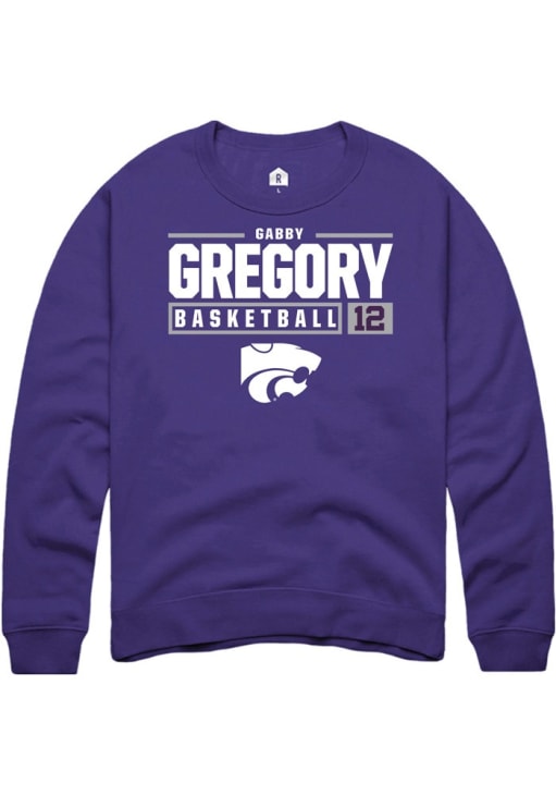 Gabriella Gregory Rally Mens Purple K-State Wildcats NIL Stacked Box Crew Sweatshirt