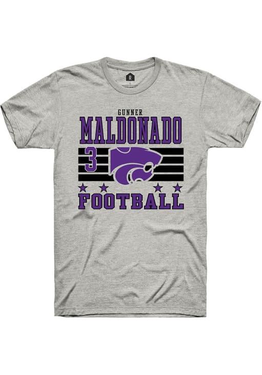 Gunner Maldonado Ash K-State Wildcats Football NIL Striped Short Sleeve T Shirt