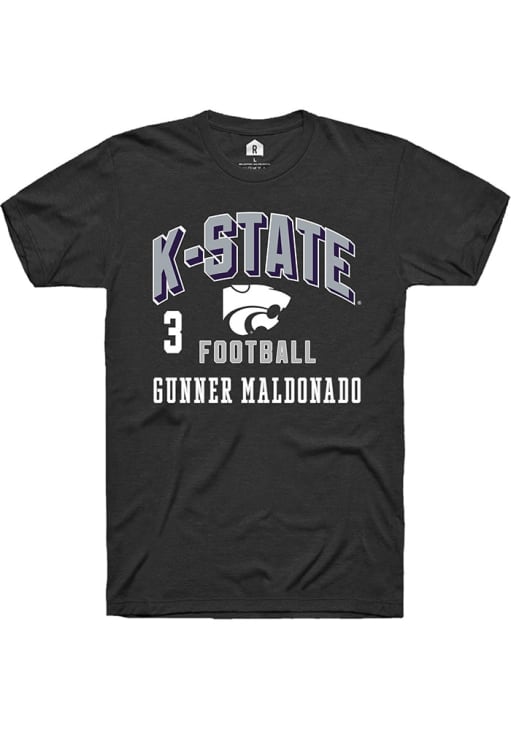 Gunner Maldonado Black K-State Wildcats Football NIL Arch Logo Short Sleeve T Shirt
