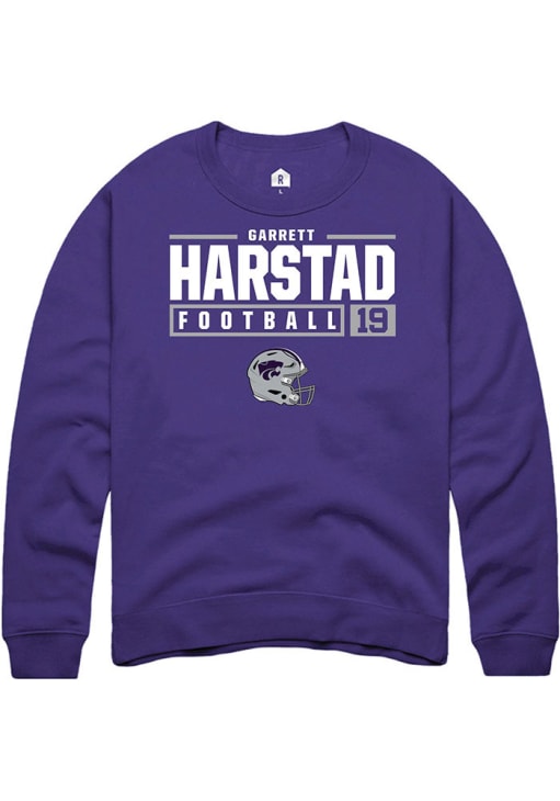 Garrett Harstad Rally Mens Purple K-State Wildcats NIL Stacked Box Crew Sweatshirt