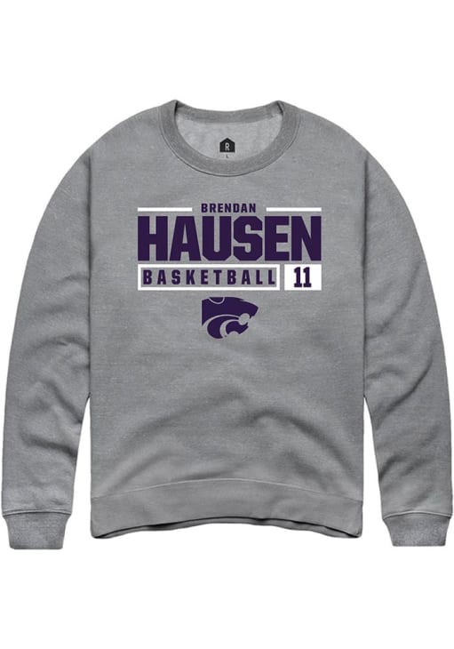 Brendan Hausen Rally Mens Graphite K-State Wildcats NIL Stacked Box Crew Sweatshirt