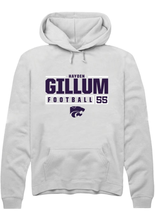 Hayden Gillum Rally Mens White K-State Wildcats NIL Stacked Box Hooded Sweatshirt