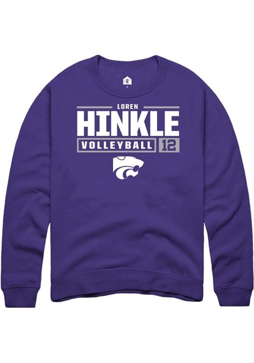 Loren Hinkle Rally Mens Purple K-State Wildcats NIL Stacked Box Crew Sweatshirt