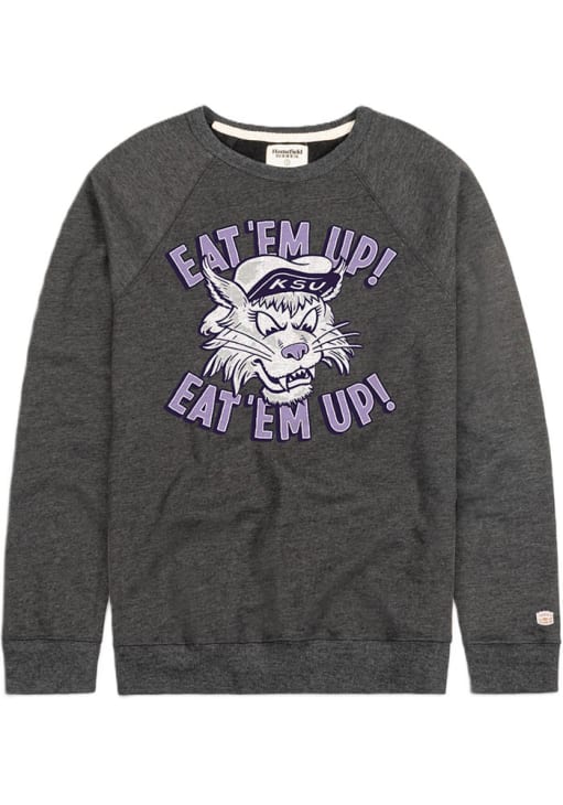 Gear up for the ultimate game day experience with this remarkable K-State WildcatsMens Charcoal Eat Em Up Vintage Fashion Sweatshirt! Designed with the true fan in mind, this Wildcats Long Sleeve Sweatshirt features a screen print team logo on front chest. Stay warm and comfortable with this Mens K-State Wildcats Wildcats Fashion Sweatshirt.