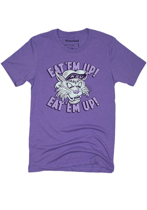 Support your K-State Wildcats in this Purple Short Sleeve Fashion Tee! This Eat Em Up Vintage Fashion T Shirt features a screen print team logo on front chest. Be ready to yell "Fear The Cats" when you wear this K-State Wildcats Short Sleeve Fashion T Shirt in your favorite stadium or on the street.