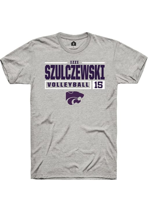 Izzi Szulczewski Ash K-State Wildcats NIL Stacked Box Short Sleeve T Shirt