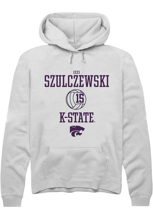 Izzi Szulczewski Rally Mens White K-State Wildcats NIL Sport Icon Hooded Sweatshirt
