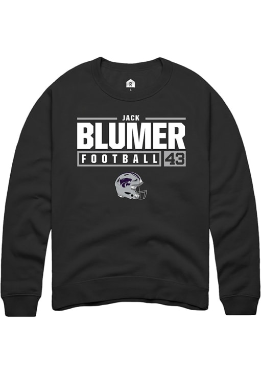 Jack Blumer Rally Mens Black K-State Wildcats NIL Stacked Box Crew Sweatshirt