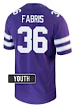 Size Chart for Jack Fabris Nike Youth Purple K-State Wildcats NIL Game Football Jersey Jersey