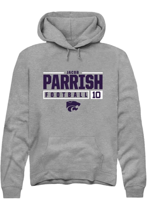 Jacob Parrish Rally Mens Graphite K-State Wildcats NIL Stacked Box Hooded Sweatshirt