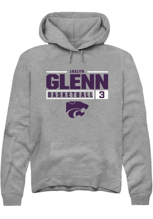 Jaelyn Glenn Rally Mens Graphite K-State Wildcats NIL Stacked Box Hooded Sweatshirt