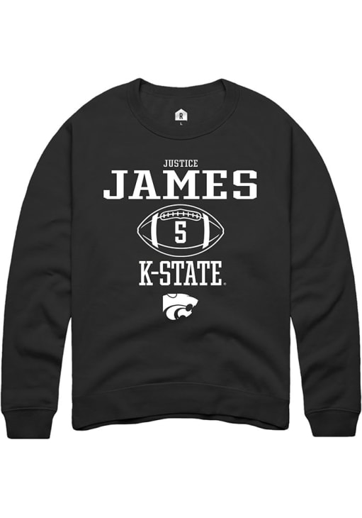 Justice James Rally Mens Black K-State Wildcats NIL Sport Icon Crew Sweatshirt