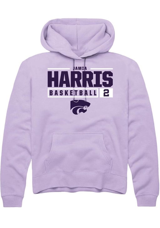 Jamia Harris Rally Mens Lavender K-State Wildcats NIL Stacked Box Hooded Sweatshirt