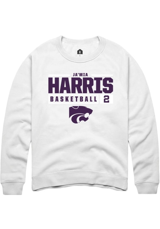 Jamia Harris Rally Mens White K-State Wildcats NIL Stacked Box Crew Sweatshirt