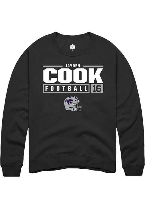 Jayden Cook Rally Mens Black K-State Wildcats NIL Stacked Box Crew Sweatshirt