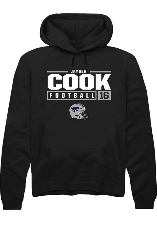 Jayden Cook Rally Mens Black K-State Wildcats NIL Stacked Box Hooded Sweatshirt